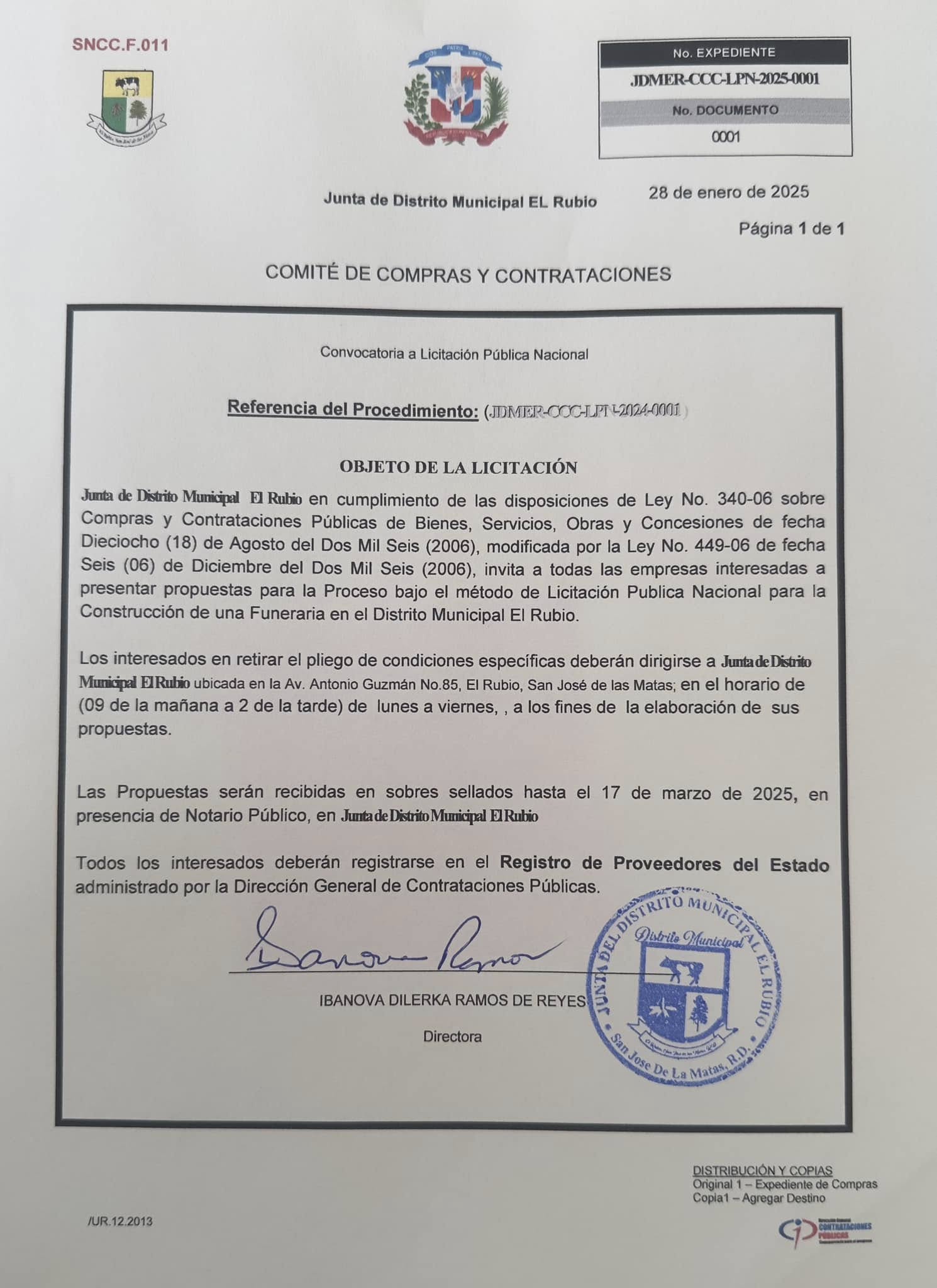 enero 30, 2025 HACEMOS DE CONOCIMIENTO PÚBLICO EL INICIO DEL PROCESO DE LICITACIÓN PARA CONCURSAR PARA LA CONSTRUCCIÓN DE LA FUNERARIA MUNICIPAL. Comparte y Comenta